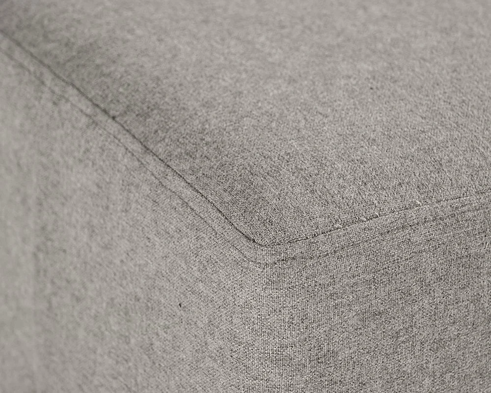 This compact ottoman will add a minimalist mid-century style to any space. A tubular black powder coated steel frame creates additional intrigue. Available in dillon chili and williamsburg faux leather or dorset platinum performance fabric. Performance fabric is moisture repellent, stain resistant and easy to clean. Also available in abbington black fabric with a gold powder coated steel frame.