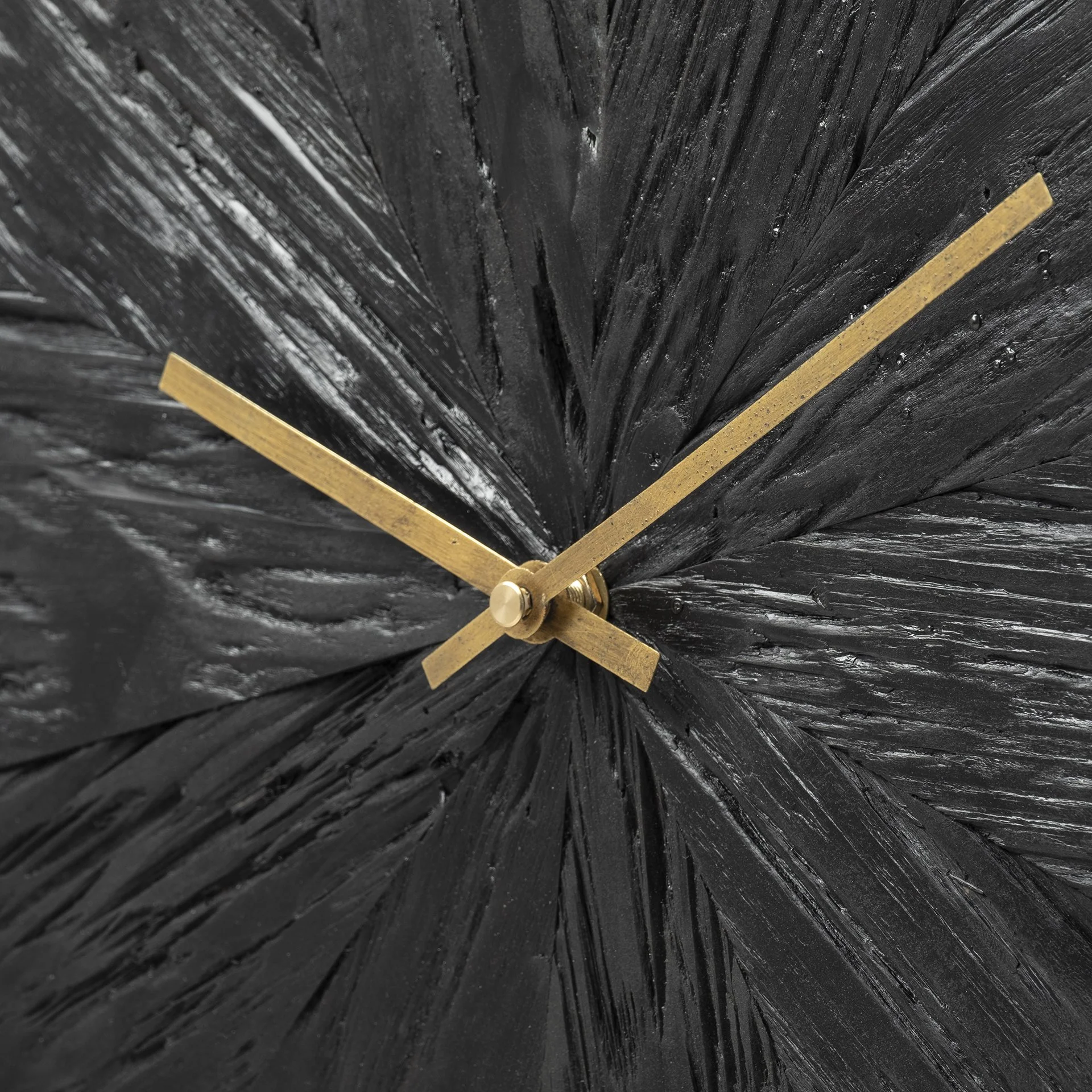 The Silo is a unique wall clock featuring a textured, wooden clock face and antiqued-gold toned hands that make it easy to read time from a distance. The Silo is finished in a spectacular, black tone with matte-black accents. Designed to be an instant head-turner in modern spaces, the Silo flaunts clean lines and a unique design, which when complemented by its radiant finish, makes it the perfect addition to any modern space and setting.