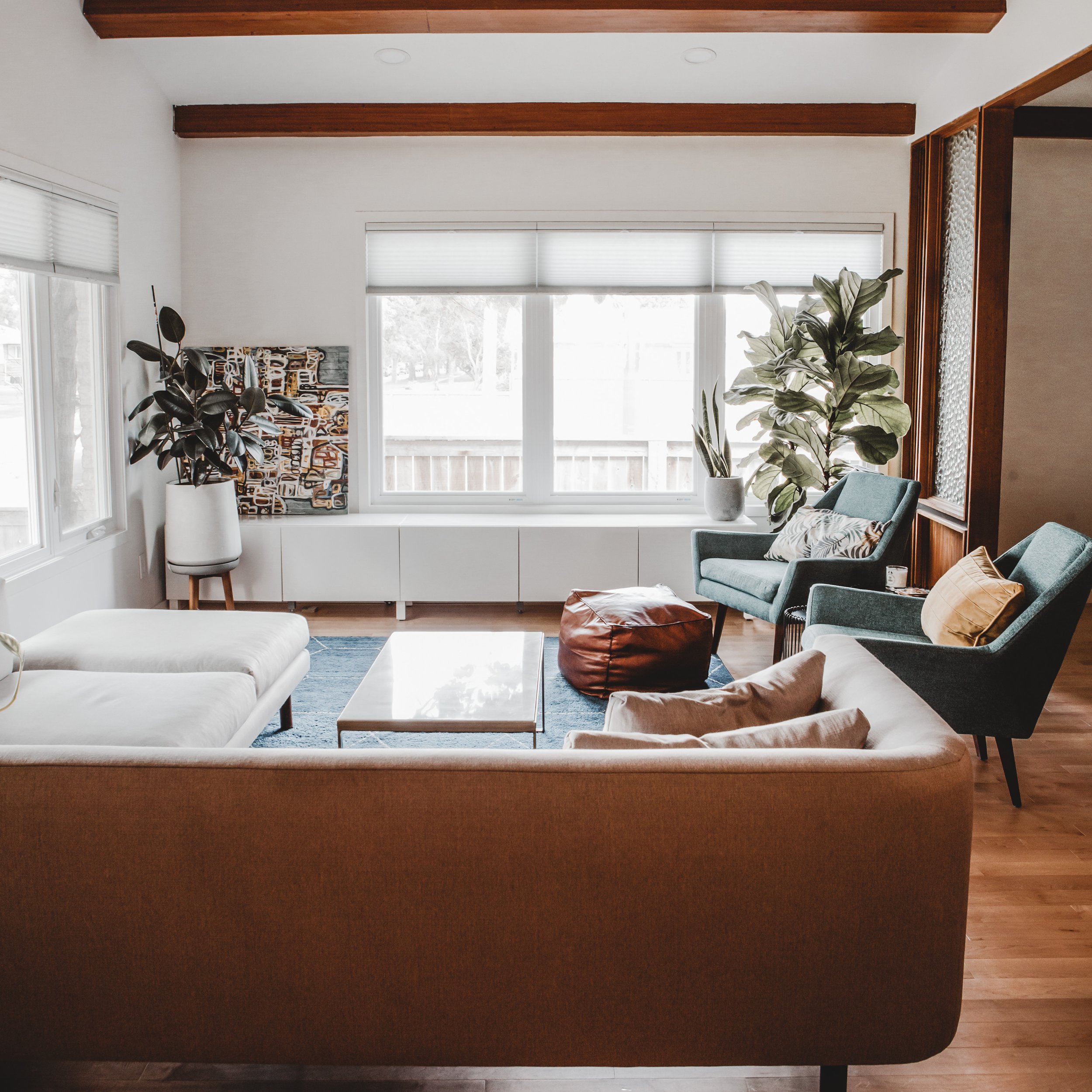 The clients wanted to work in a “Palm Springs” mid century vibe - which we did with bright pops of colour throughout the furniture and decor choices. The furniture was a large component of this project when it came to tying all of the design elements together. We were able to curate the look and the clients put it all together!