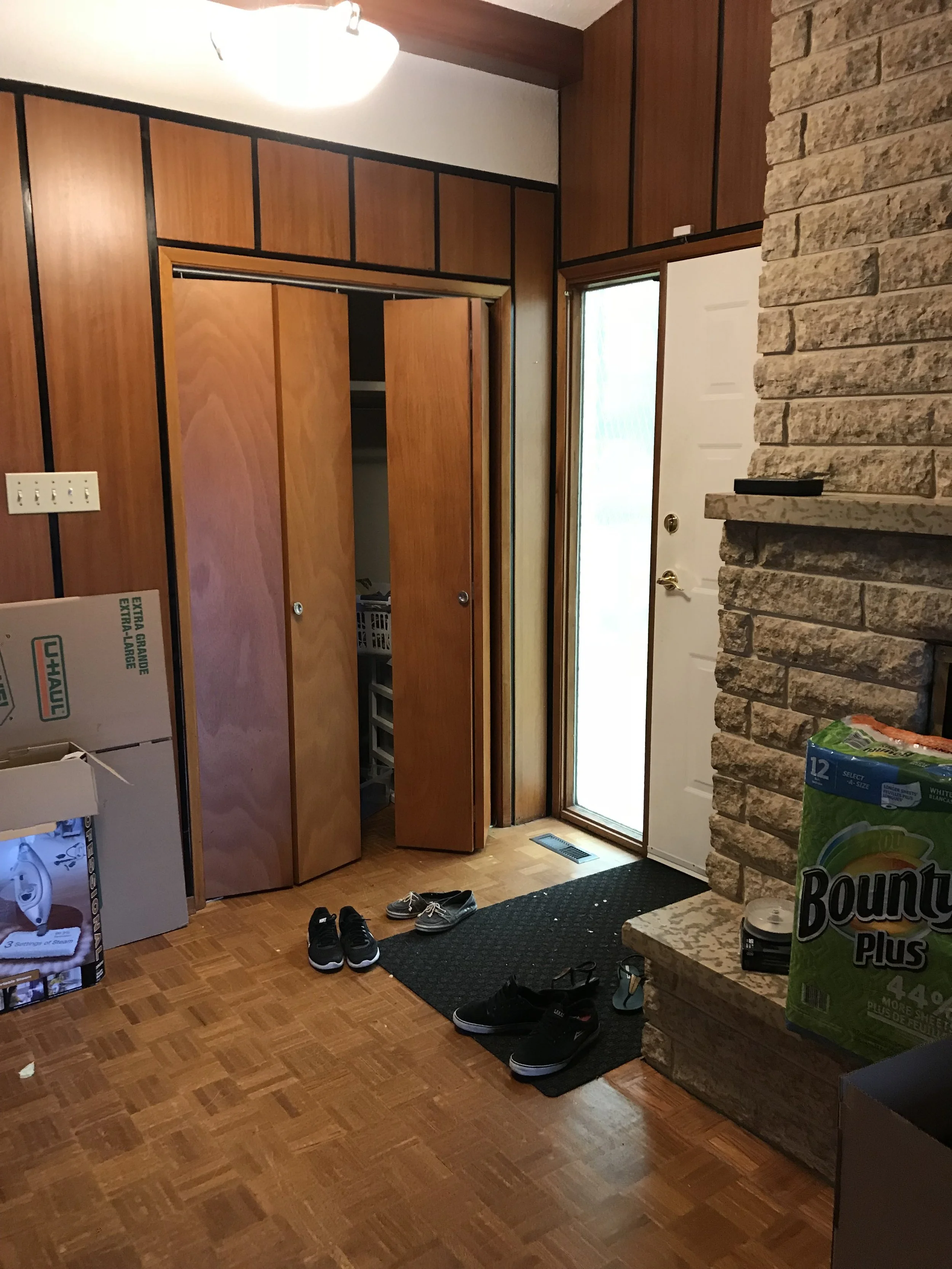 This was primarily a main floor renovation - focusing on the kitchen, entry, living room and dining room. The home was already a beautiful mid-century style and the clients wanted to maintain lots of the design aesthetic and details. The first goal was to open up the kitchen to the living space. The original fireplace is located right next to the entry and that made it hard to maintain circulation space and include seating, especially because it made the living space too long and narrow. It ultimately was an unusable space with a great feature fireplace.