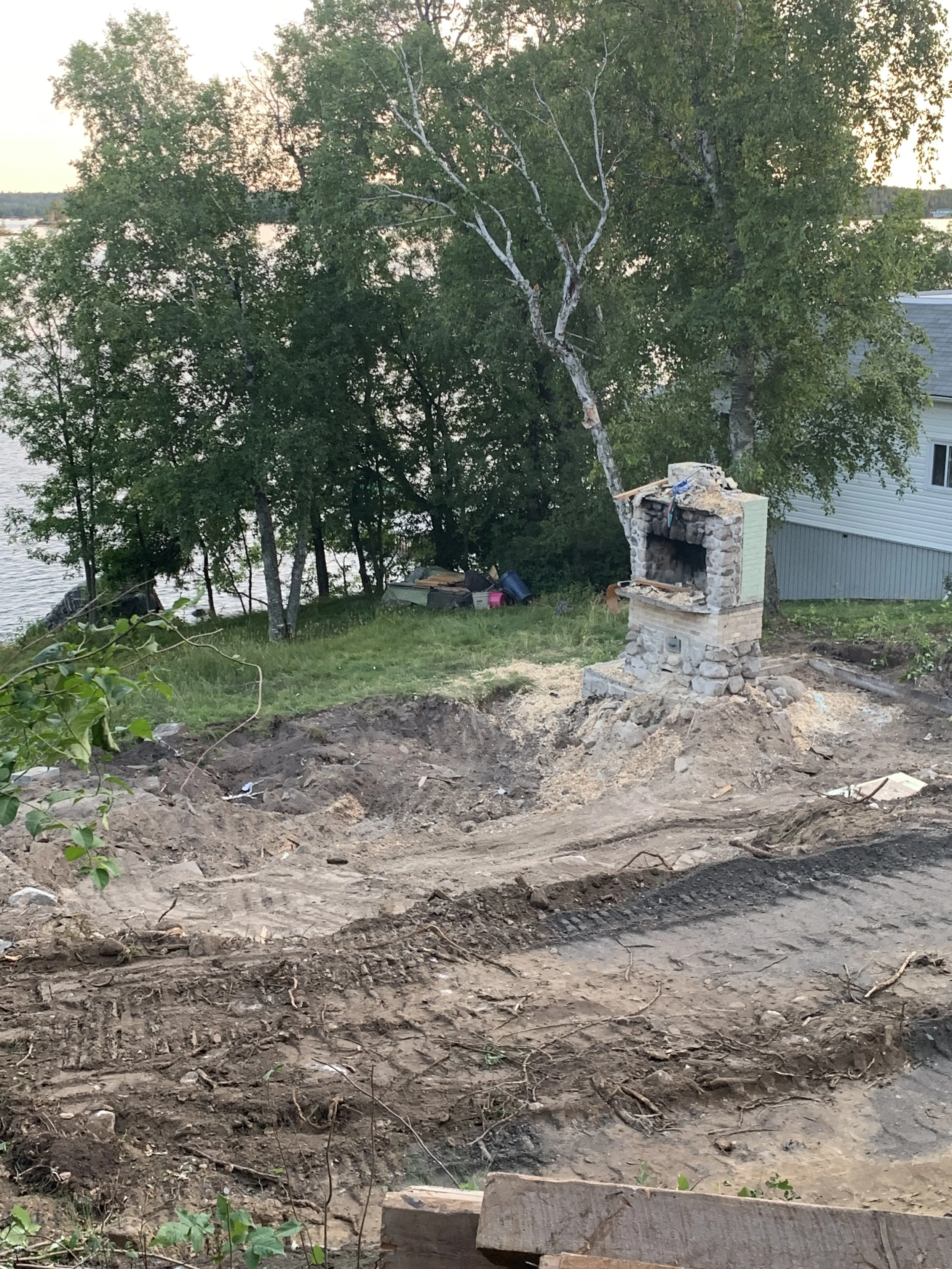 We went as far as demolishing the cabin around the fireplace with the hopes to rebuild it, integrating it into the new space. Unfortunately, under current codes, the fireplace wouldn’t have met WETT certifications, which meant it would have had to been sealed off making it unusable, and insurance would have been very hard, if not impossible and/or expensive to get. So alas, we had to let the beautiful OG fireplace go. So began the planning of what to put in it’s place!