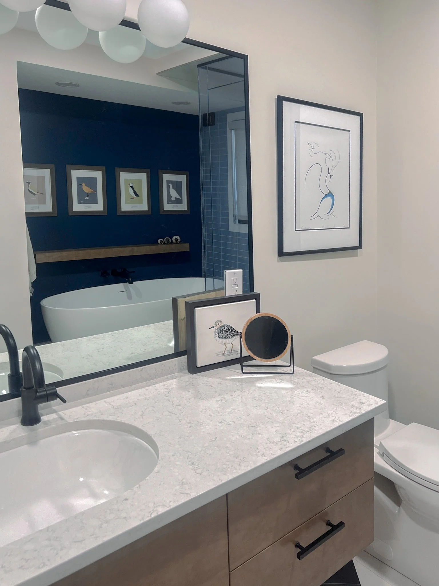 In 2019, this beautiful 1968 Tuxedo bungalow, experienced a small fire that led to extensive smoke damage throughout the house. Though the owners decided to move on, the home was kept within the family and became an opportunity for the new owner to transform the house into a very special place of their own. We began the redesign of the main floor in 2020, helping the client downsize into this space, while maintaining some critical spacial needs within the same footprint of the house. The flow from the kitchen, dining and living area was reworked to create a connected, open space and an ensuite was added to create a spa like oasis. The design was inspired by Mid-Century Modern tones, with touches of Scandinavian and Traditional elements. This eclectic design came to together to create a truly unique space! The exterior is currently undergoing a face lift to complete the transformation of this beautiful old home, made new again!
