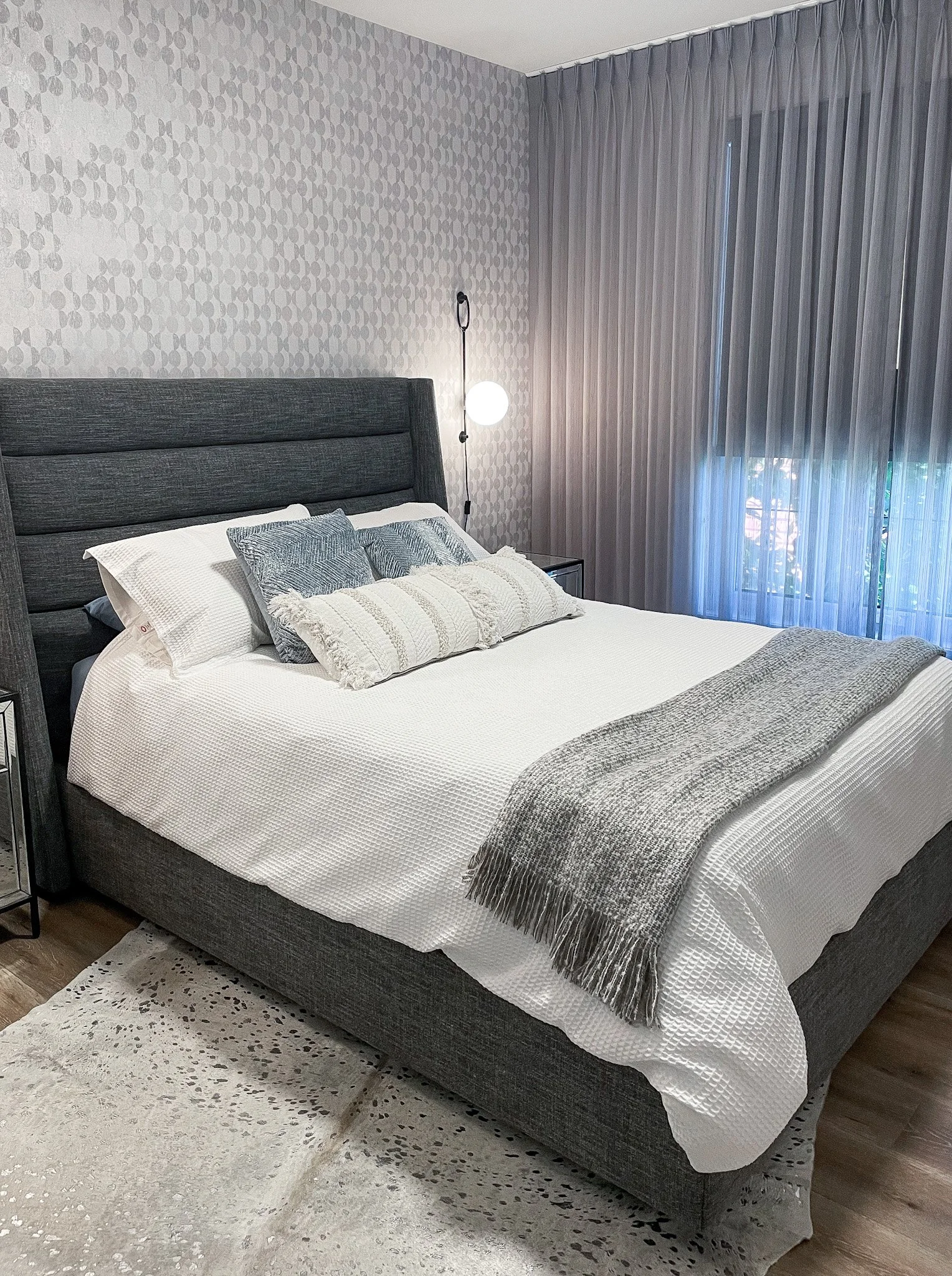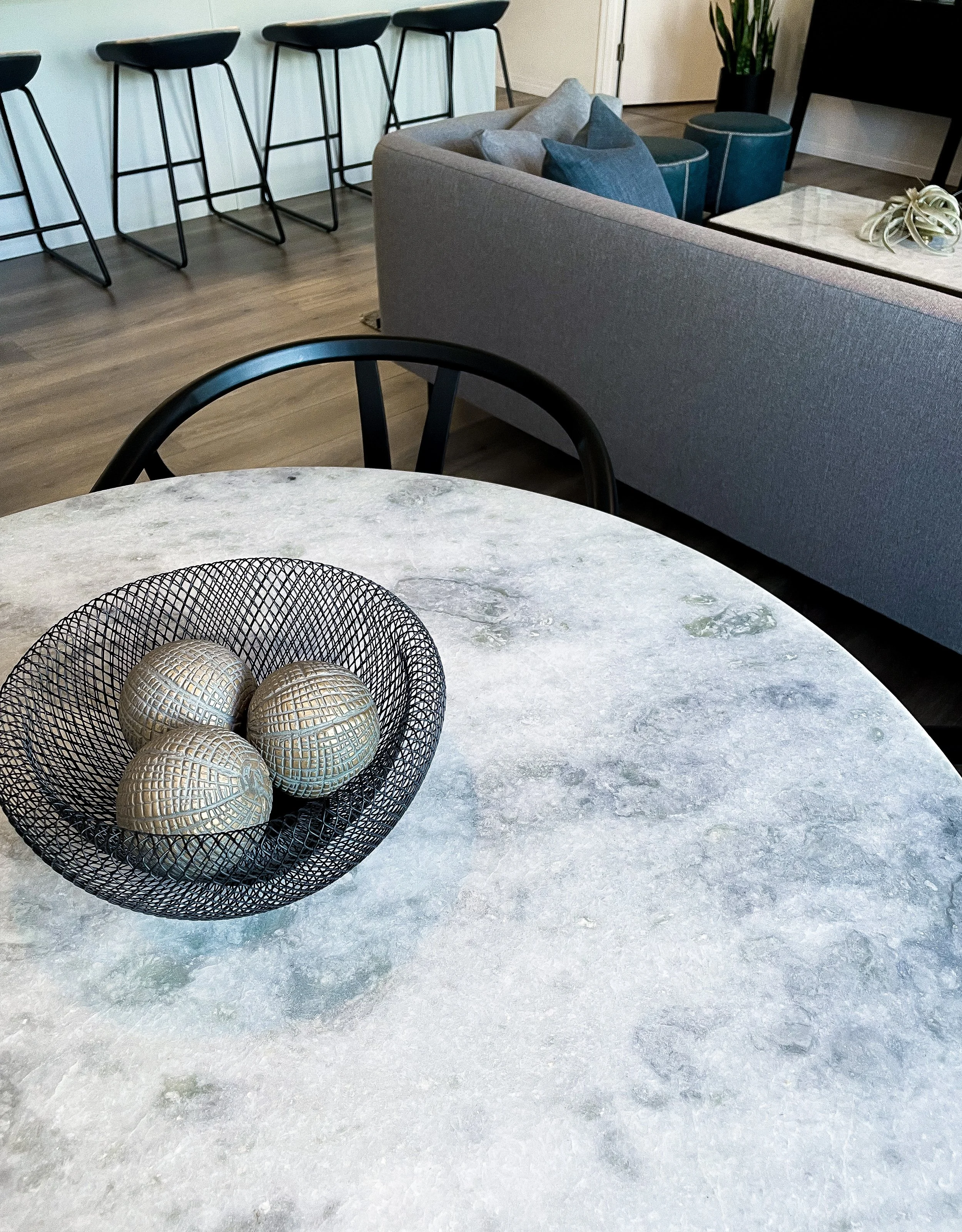 All good things take time… and this was one of them! This custom curated condo took 2 years to complete. From long lead times and issues in the industry throughout the pandemic, it took a while to source all of the furniture and decor, but it finally all came together! Our goal for this condo was to create a space that felt “spa” like, which is why we opted for soft colours with hints of cool tones and incorporating blues. Curating each accessory down to the planters, was critical in curating the layers with textures and patterns. We focused on soft organic forms to tie this space together and create a zenned-out space for our client to come home to!
