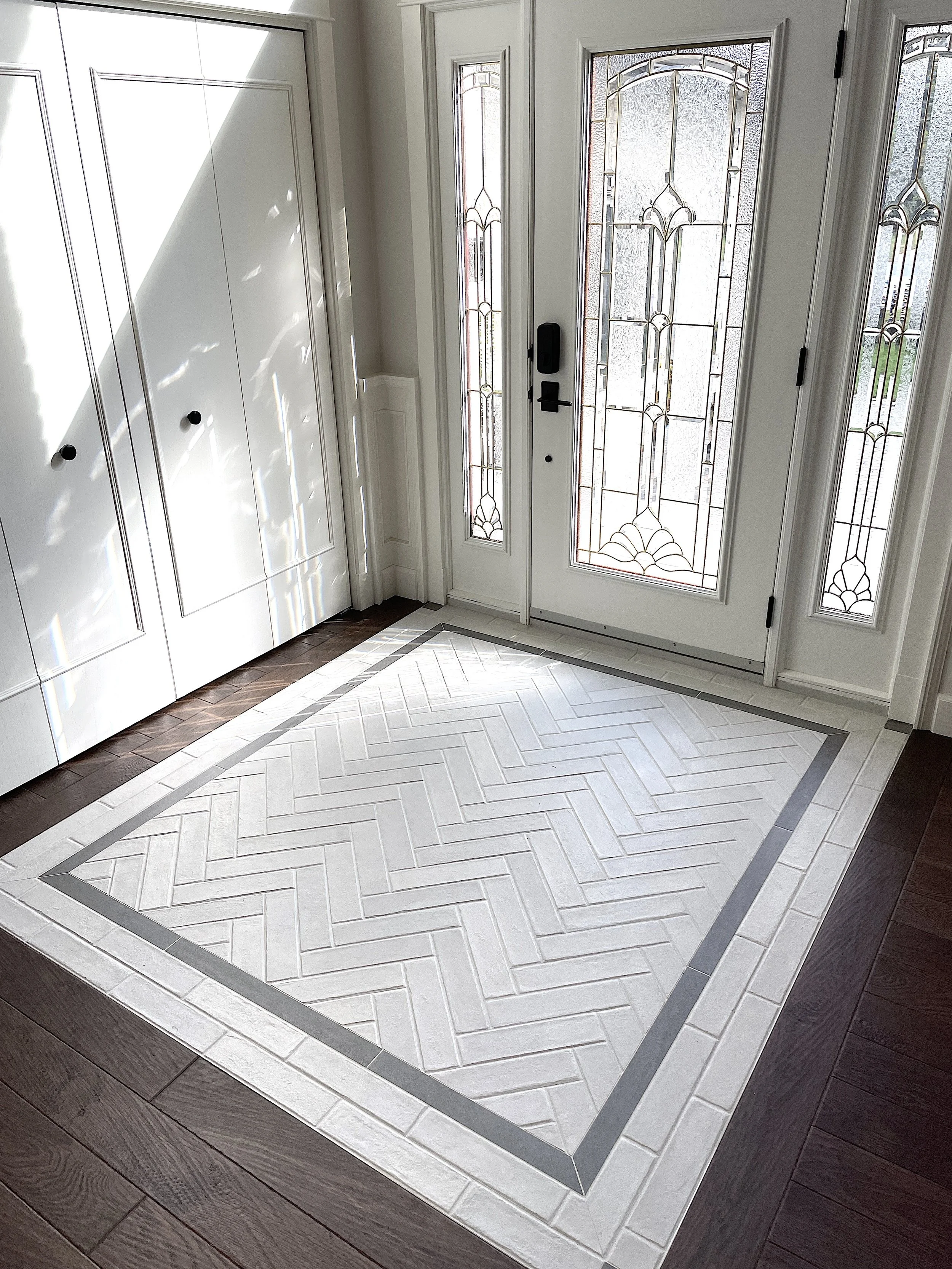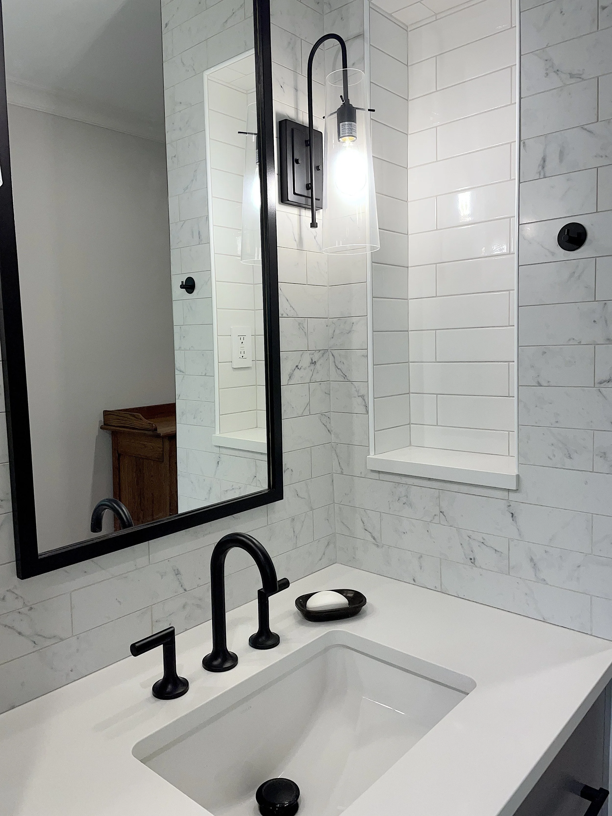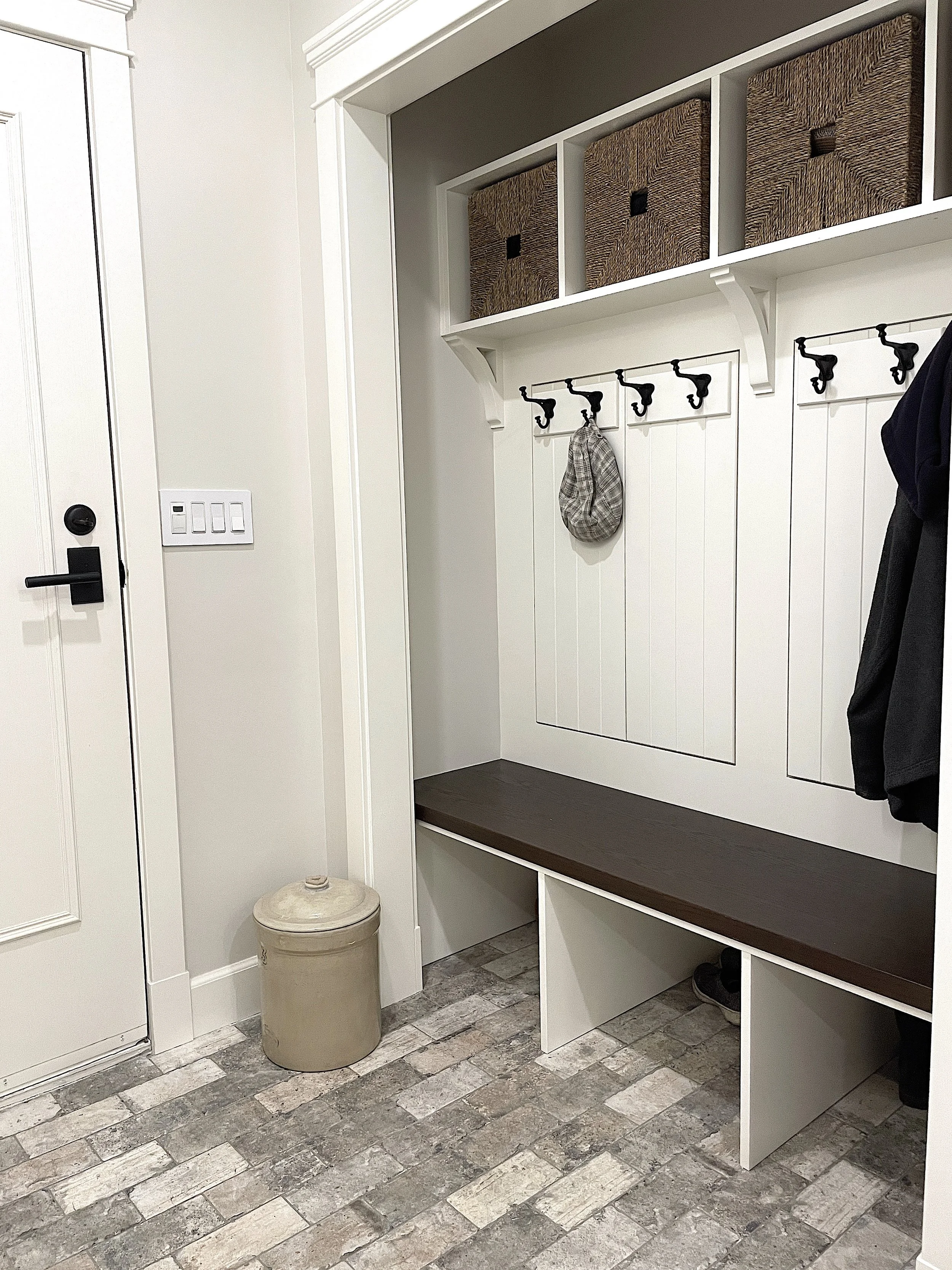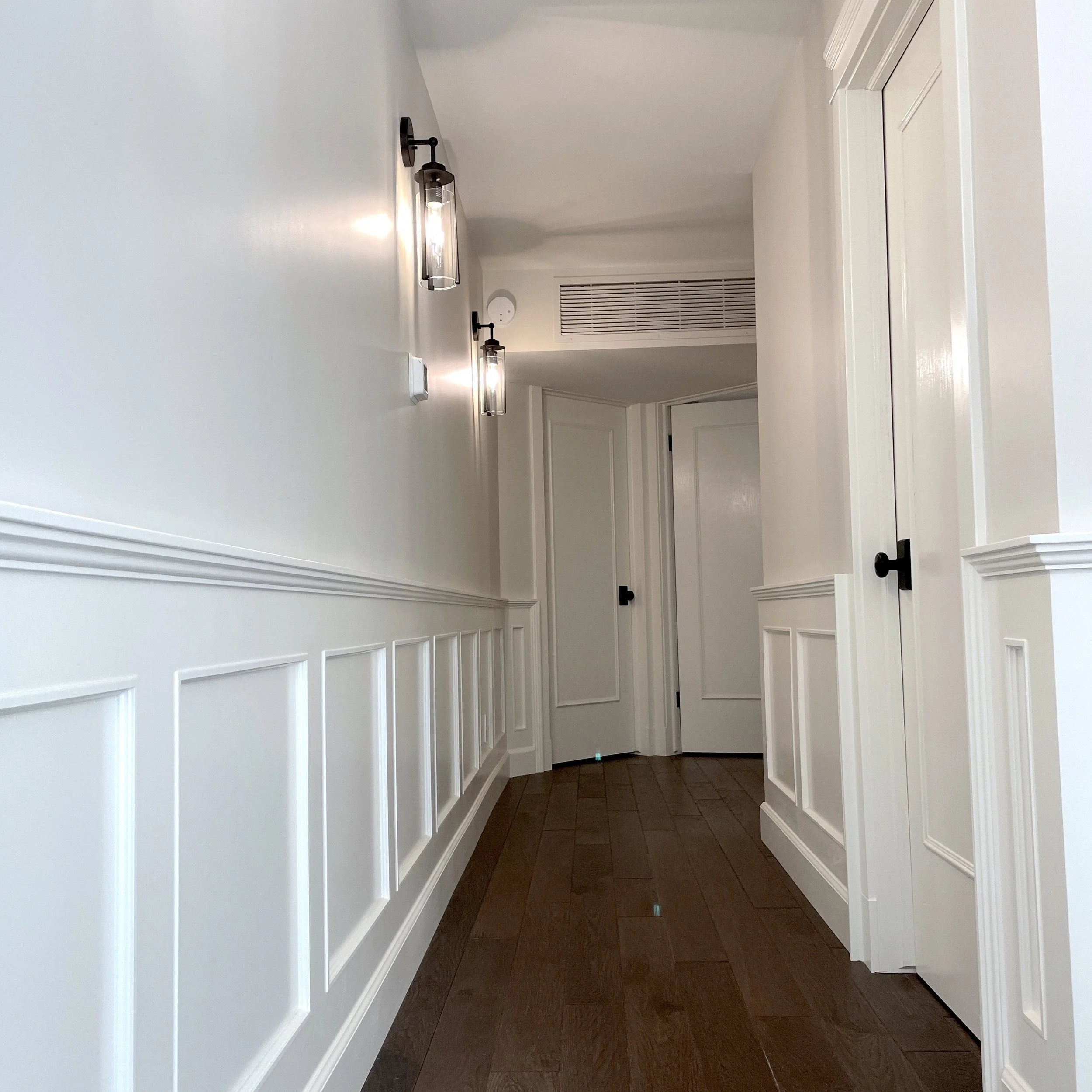 We took a 1980s house, oak trims and all, and turned it into a gorgeous modern colonial masterpiece! This design features detailed intricate mouldings, a coffered ceiling, stunning fireplace, custom mudroom millwork and the list goes on! We loved working with these clients because of their unique hands on approach that added some amazing, one of a kind details! They even built their own custom laundry room door etched with their initials in it! Talk about personal touches that completely make a space your own!