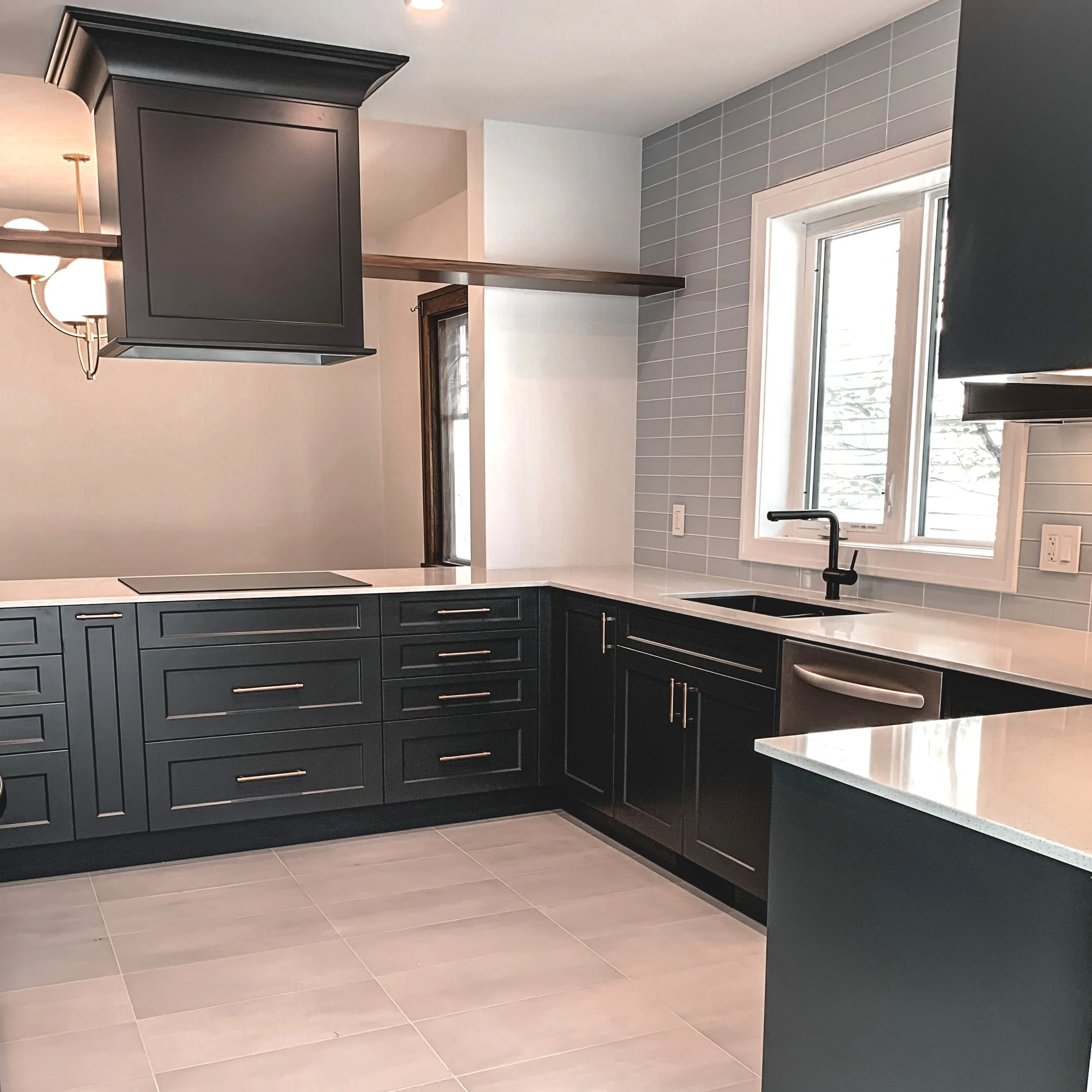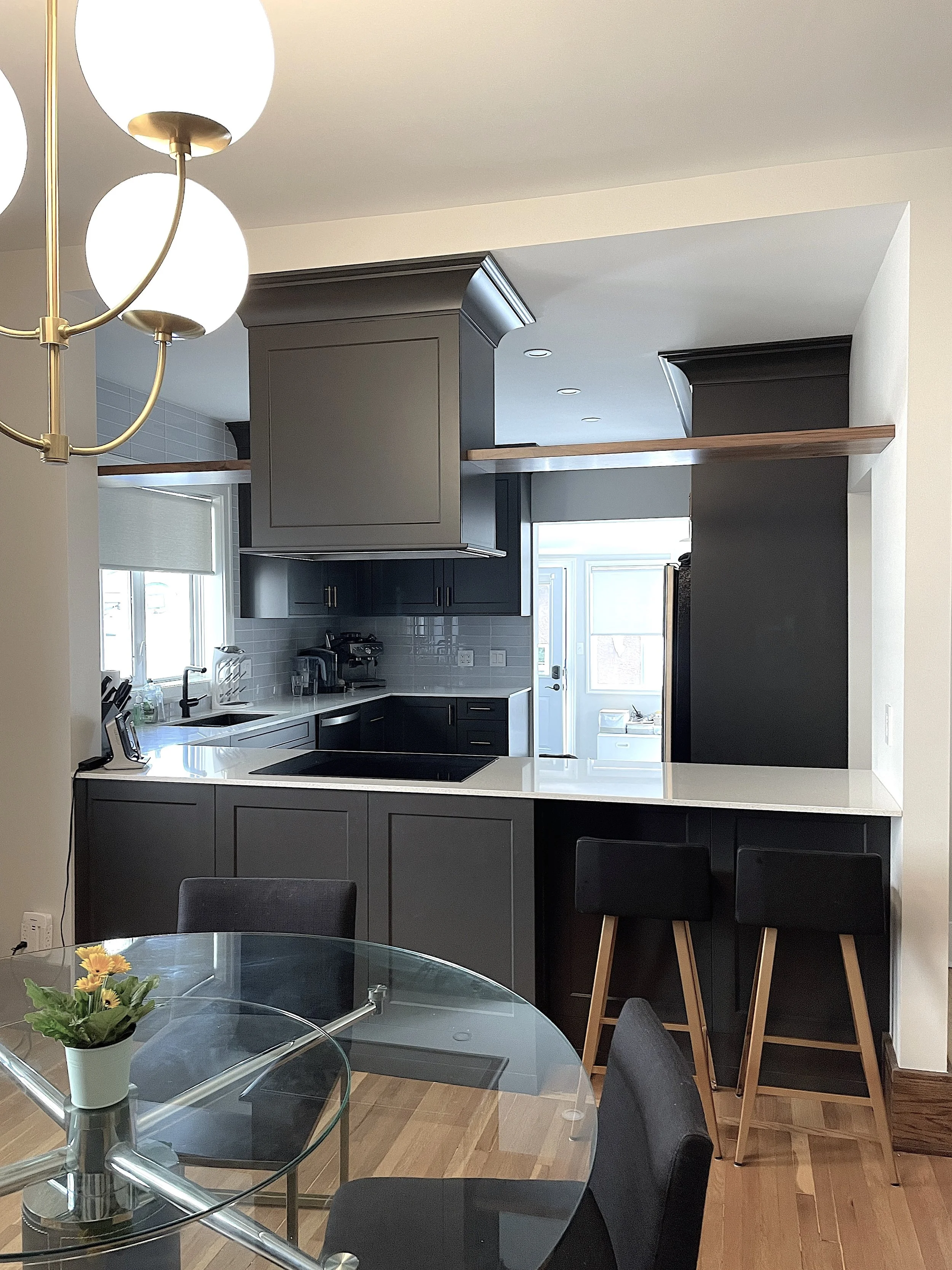 How to modernize a classic? We love this character home and wanted to stay true to the original design, while giving it a proper refresh! Opening up the dining room wall really brought light through the home and created a feature cooking area! Dark millwork created some depth in the color pallet and we love love love the original fireplace update! Being able to keep the OG hardwood was also a big bonus! Curating the furnishings added the extra design layer to the space that brought it all together!